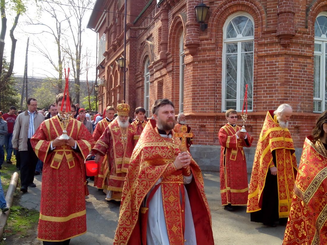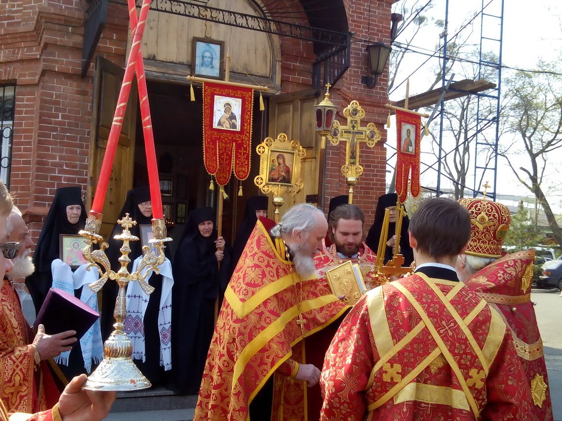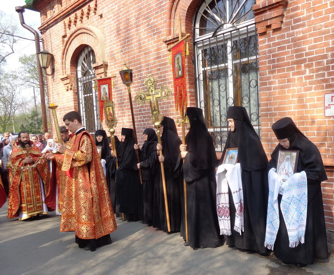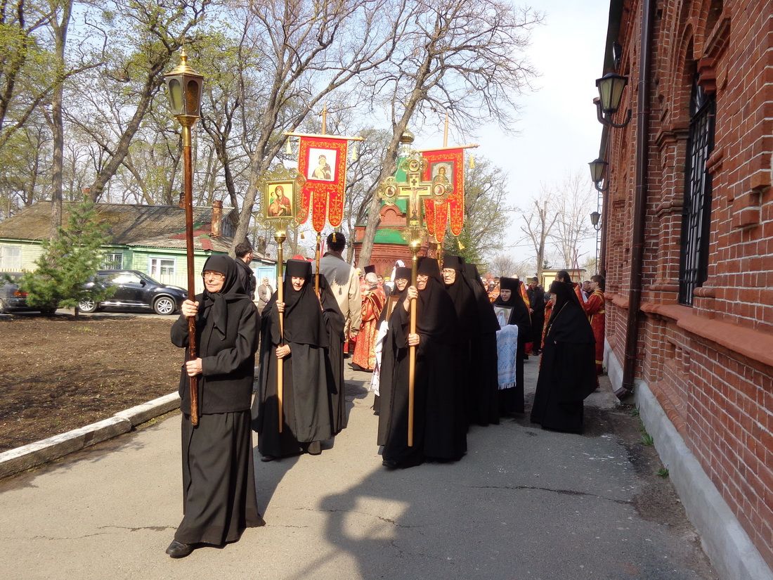 4 мая 2014 года. Владивосток. Седанка. Митрополит Владивостокский и Приморский Вениамин в день памяти жен-мироносиц, первой из которых была небесная покровительница Марфо-Мариинского монастыря – равноапостольная Мария Магдалина, по традиции совершил в монастырском храме священномученика Евсевия Самосатского Божественную литургию. Его высокопреосвященству сослужили благочинный I благочиния епархии иерей Димитрий Федорин и клирики монастыря. После литургии состоялся крестный ход. Митрополит Вениамин наградил архиерейскими грамотами трудников и благотворителей монастыря.