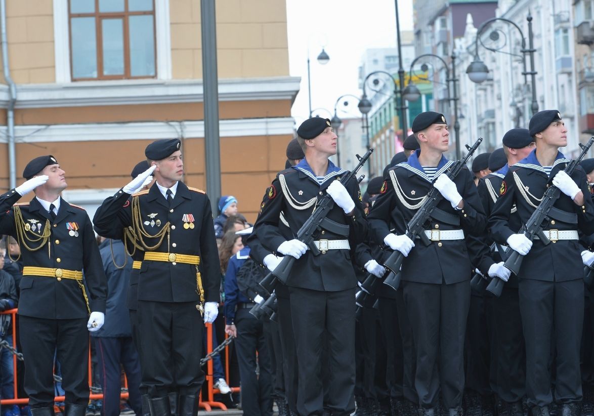 Принимал парад командующий Тихоокеанским флотом вице-адмирал Сергей Авакянц. Парад открылся выносом флага Российской Федерации и знамени Победы – это почетное право было предоставлено офицерам Тихоокеанского Высшего Военно-Морского училища им.Макарова, в штатном расписании которого назначен первый во Владивостокской епархии штатный военный священник.