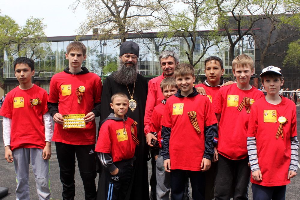 По благословению митрополита Владивостокского и Приморского Вениамина во время торжественного открытия военно-патриотических стартов команды напутствовал руководитель епархиального молодежного отдела иерей Димитрий Винокуров. Священник напомнил собравшимся о важности чествования героев Великой Отечественной войны, в честь которых и проводятся «Георгиевские старты»; рассказал о вкладе в отечественную историю таких выдающихся полководцев как А.В. Суворов, Ф.Ф. Ушаков и др.