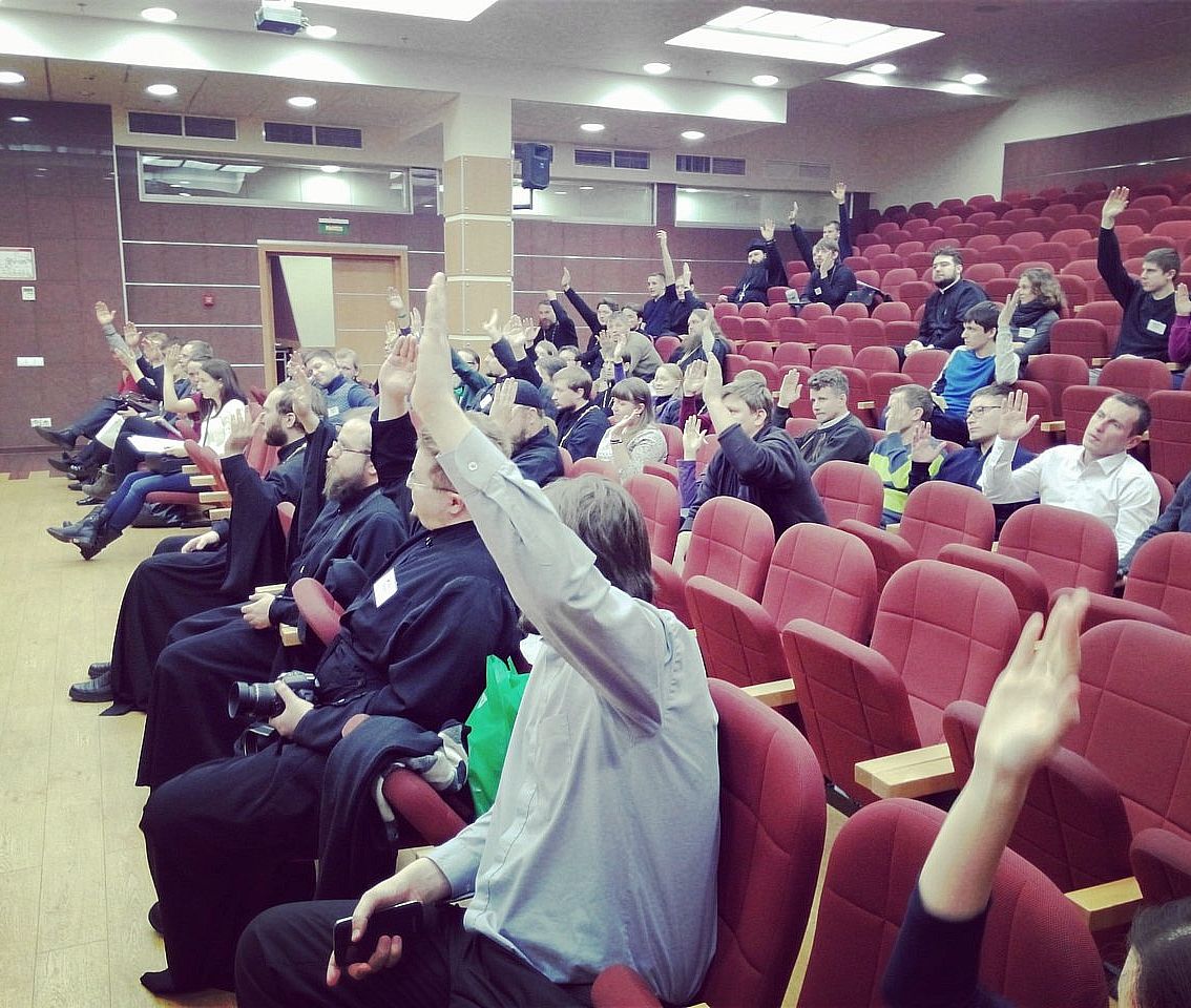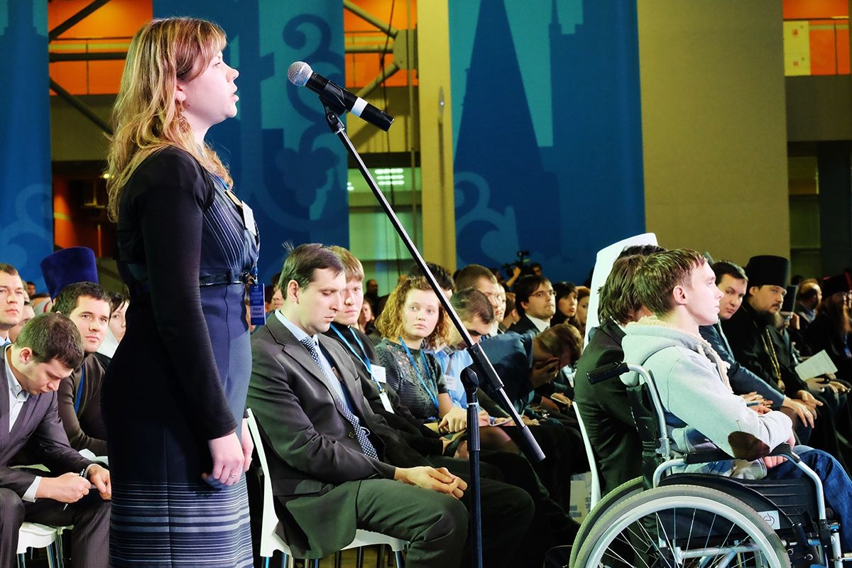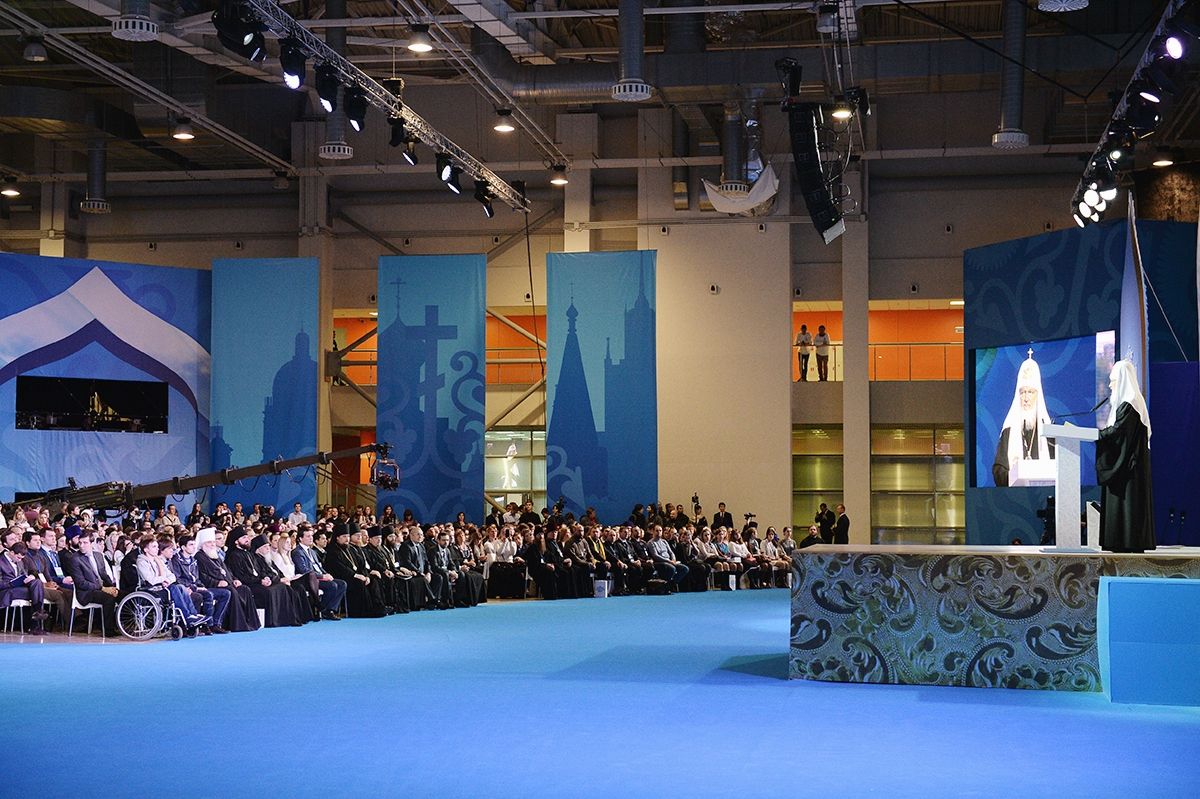 Москва. Первый Международный съезд православной молодежи открылся 18 ноября 2014 года во Всероссийском выставочном центре. Церемонию возглавил Святейший Патриарх Московский и всея Руси Кирилл. Предстоятель Русской Церкви обратился к участникам съезда с Первосвятительским словом и ответил на вопросы представителей православных молодежных организаций.