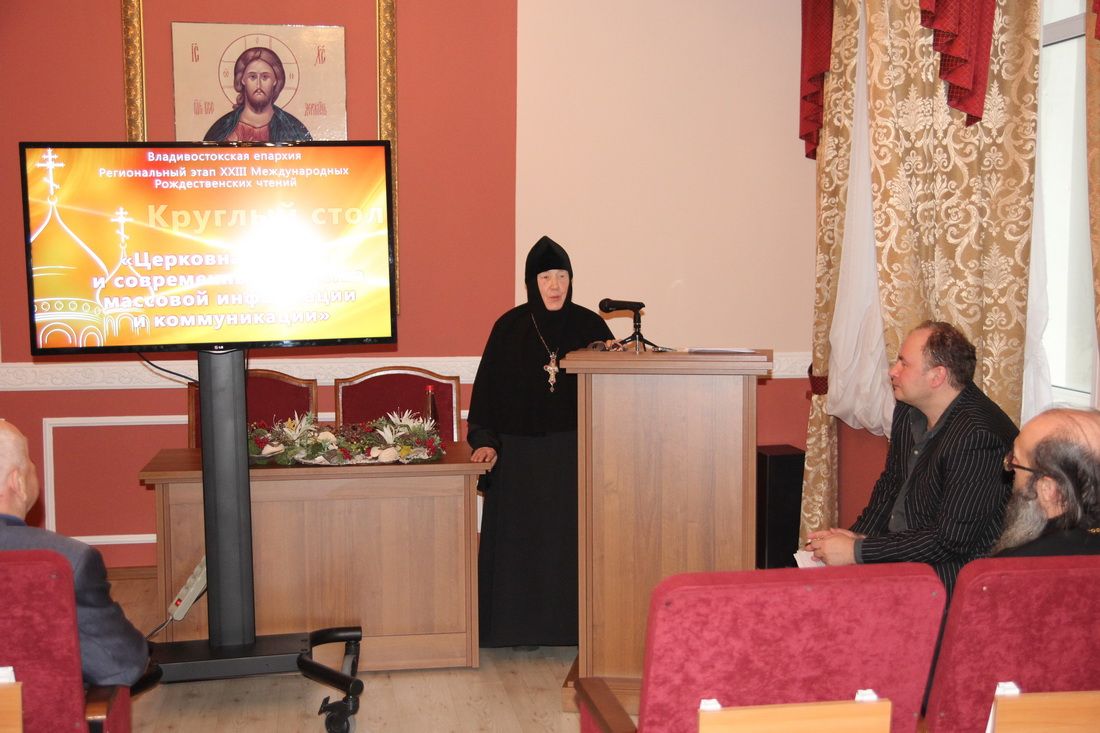 Владивосток. Участникам регионального этапа XXIII Международных Рождественских чтений, собравшихся на круглый стол: «Церковная жизнь и современные средства массовой информации и коммуникации» представили видеофильм студии «Приморская митрополия».
