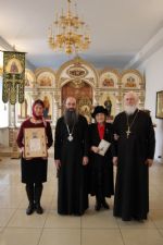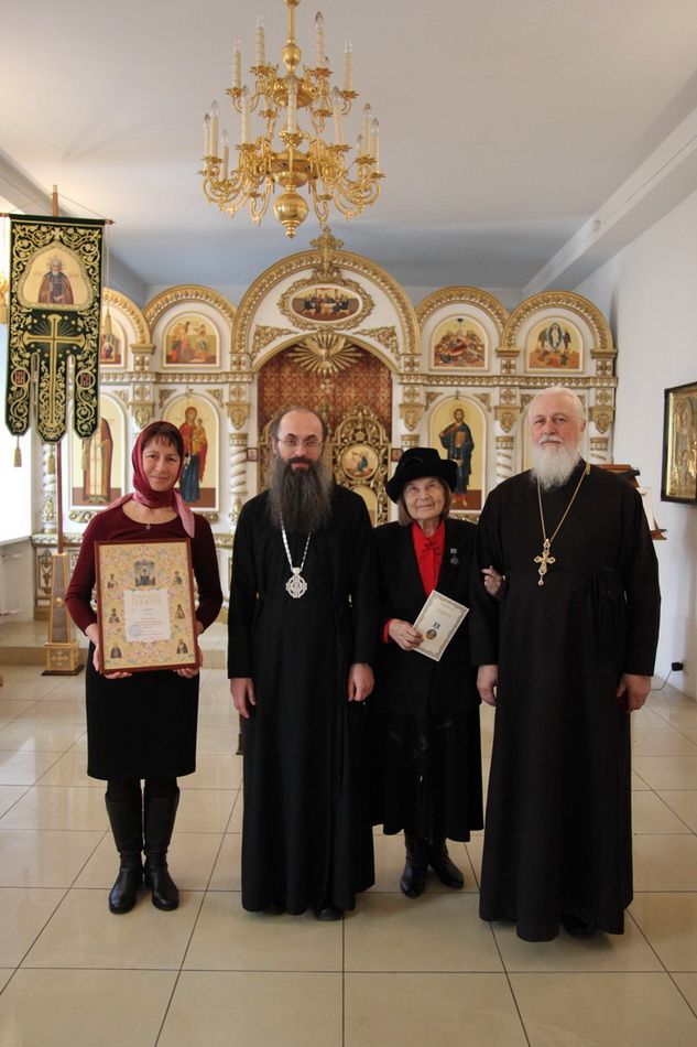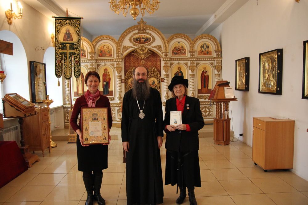 Владивосток. Епископ Уссурийский Иннокентий, викарий Владивостокской епархии в крестовом храме преподобного Сергия Радонежского вручил епархиальные награды авторам книги «Святыни Никольского кафедрального собора». По благословению митрополита Владивостокского и Приморского Вениамина автор и составитель книги прихожанка Никольского кафедрального собора Лариса Витальевна Александровская удостоена епархиальной медали "За церковные заслуги" III степени, Елена Тимофеевна Даныш награждена архиерейской грамотой.