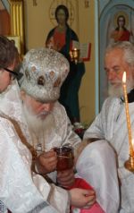Затем митрополит Вениамин совершил чин освящения крестов на купола храма. За богослужением присутствовали жертвователи, строители и прихожане, всего более 100 человек. Праздник продолжился за праздничной трапезой, по завершении которой освященные кресты были вознесены на купола храма.