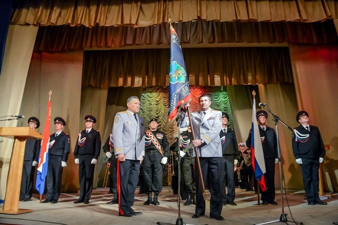 Представитель МВД Юрий Валяев зачитал текст Грамоты Президента России и вручил главе Приморского УВД Николаю Афанасьеву новое знамя. Мероприятие завершилось праздничным концертом с участием творческих коллективов полиции и флота.