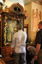 Екатерина: Как замечательно, что было так много гостей на празднике! Как обычно, храм был полон. Исповедовали три священника и очереди были к ним через весь храм! Кому не хватило места или было душно – стояли на улице у открытых настежь окон. Было прекрасно слышно богослужение.