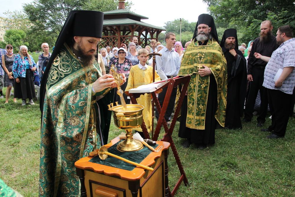 По окончании Божественной литургии состоялись водосвятный молебен и крестный ход вокруг храма святого Серафима Саровского.