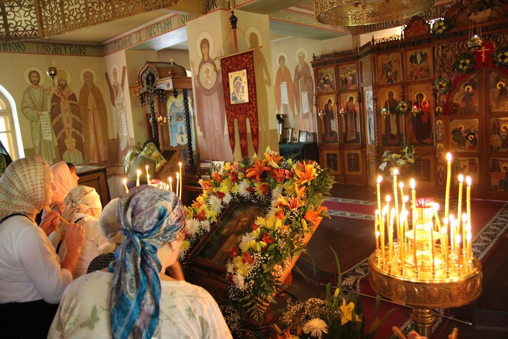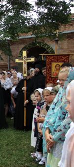 Завершилась Божественная литургия молитвой преподобному Серафиму Саровскому и величанием святому. Игумен Климент рассказал богомольцам о жизни и подвигах преподобного батюшки, которого Русская Православная Церковь любит и почитает на протяжении уже более 100 лет.