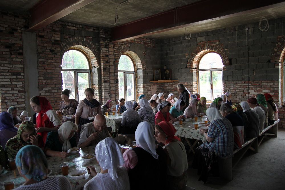 По благословению отца наместника группа прихожанок приготовила трапезу для паломников.