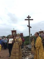 По окончании Литургии состоялся торжественный Крестный ход к Поклонному кресту, установленному на месте разрушенного храма Преображения Господня. Силами ЗАО «Востокбункер» подготовлена площадка для проведения торжества, установлен крест и уложены камни из фундамента разрушенного храма. В крестном ходе приняли участие прихожане храма Рождества Христова, воспитанники патриотического клуба «Держава», казаки, просто неравнодушные жители Славянки.
