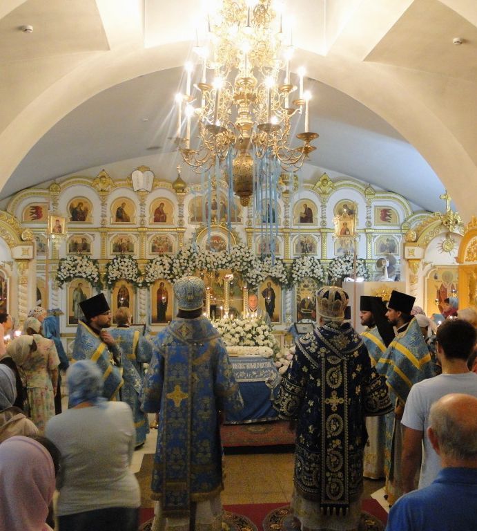 За Соборным служением пел Хор Успенского храма (регент Юлия Геннадьевна Лосева); молились прихожане, меценаты, почетные гости, участниками праздничных служб стали более пятисот человек. Храм был украшен цветочными композициями, составленными профессиональными флористами – в память о Святом Придании, гласящем, что Архангел Гавриил, сообщая весть о скором успении Божией Матери, принёс Ей цветок из райского сада.