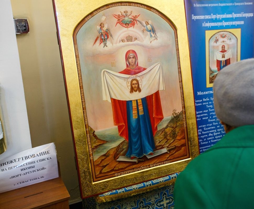 - Дальнейшая передача Владивостокской святыни черноморским морякам состоится в рамках духовной акции Приморской митрополии по принесению Порт-Артурской иконы Божией Матери «Торжество Пресвятой Богородицы» в города России и зарубежья. Акция была начата в июле 2015 года, когда Морской Крестный ход на паруснике «Паллада» доставил список святыни в китайские и корейские города – по маршруту «Владивосток-Циндао-Йосу-Далянь-Владивосток» – в рамках празднования 70-летия окончания Второй мировой войны и 110-летия окончания Русско-Японской войны.