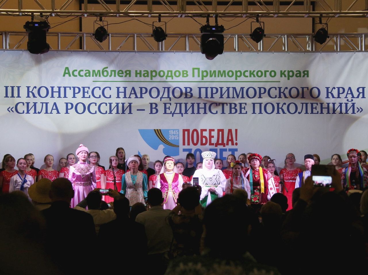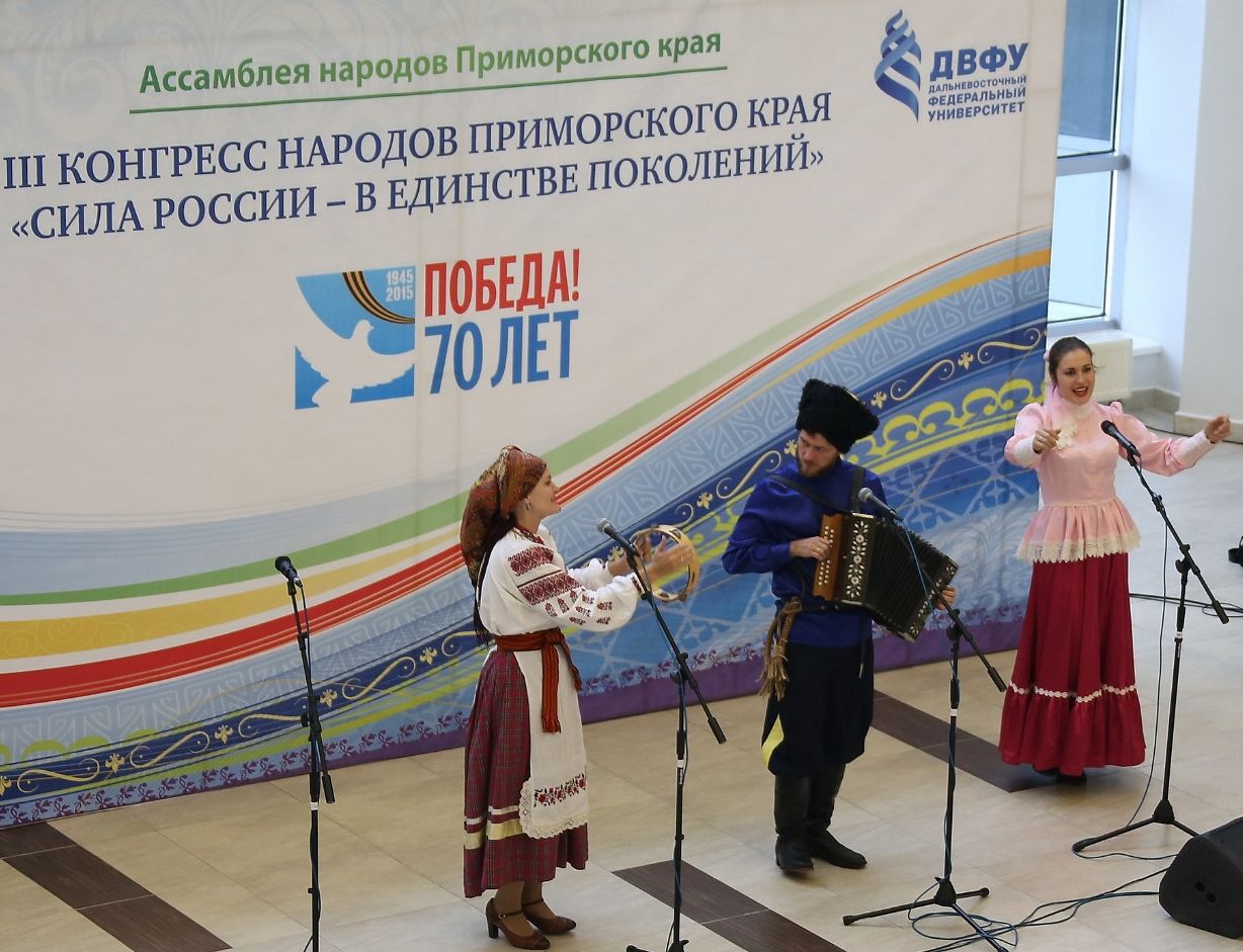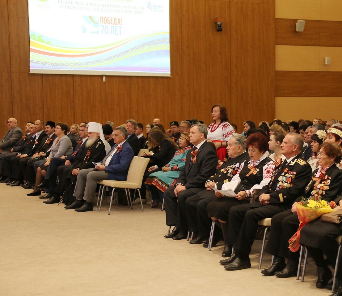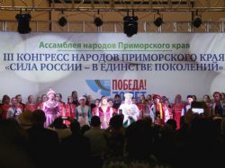 Как отметили участники конгресса, Приморье – это многонациональный регион, в котором проживает более 150 национальностей, и всех их объединяет единое наследие, в том числе, – общая Победа в Великой Отечественной войне. Поэтому III Конгресс народов Приморья проходит под девизом «Сила России – в единстве поколений» и посвящен 70-летию окончания Второй мировой войны.