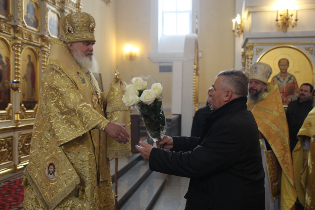 Поздравить Высокопреосвященнейшего владыку приехали клирики из храмов и монастырей епархии. От имени духовенства и прихожан епархии митрополита Вениамина поздравил ключарь Покровского кафедрального собора протоиерей Александр Талько. От имени монашествующих тёплые слова сказала настоятельница Марфо-Мариинского женского монастыря на Седанке игумения Мария (Пономарёва).
