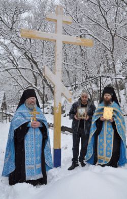 Другой Поклонный крест будет установлен на въезде в само село Чистоводное. В дар о таком важном событии иеромонах Адриан вручил А.А.Сальникову – икону Божией Матери «Живоносный Источник» и молитву.