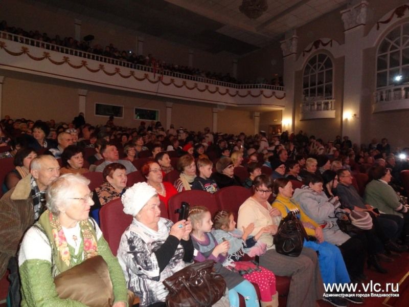 Концерт "Щедрый вечер" традиционно вызывает огромный интерес у приморцев – зрители сидели на приставных стульях, стояли в проходах и очень сожалели, что зал в ДК железнодорожников не вмещает всех желающих.