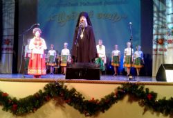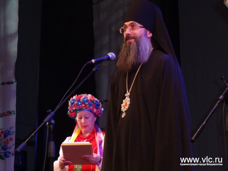 С поздравлением к собравшимся обратился викарий Владивостокской епархии епископ Уссурийский Иннокентий. Владыка напомнил о том, так много людей собрались в этом зале, не только послушать песни, но и вспомнить ради Кого были написаны и эти песни, колядки, и какие обычаи прошли чрез века от наших предков чтобы мы могли достойно встретить праздник Рождества.