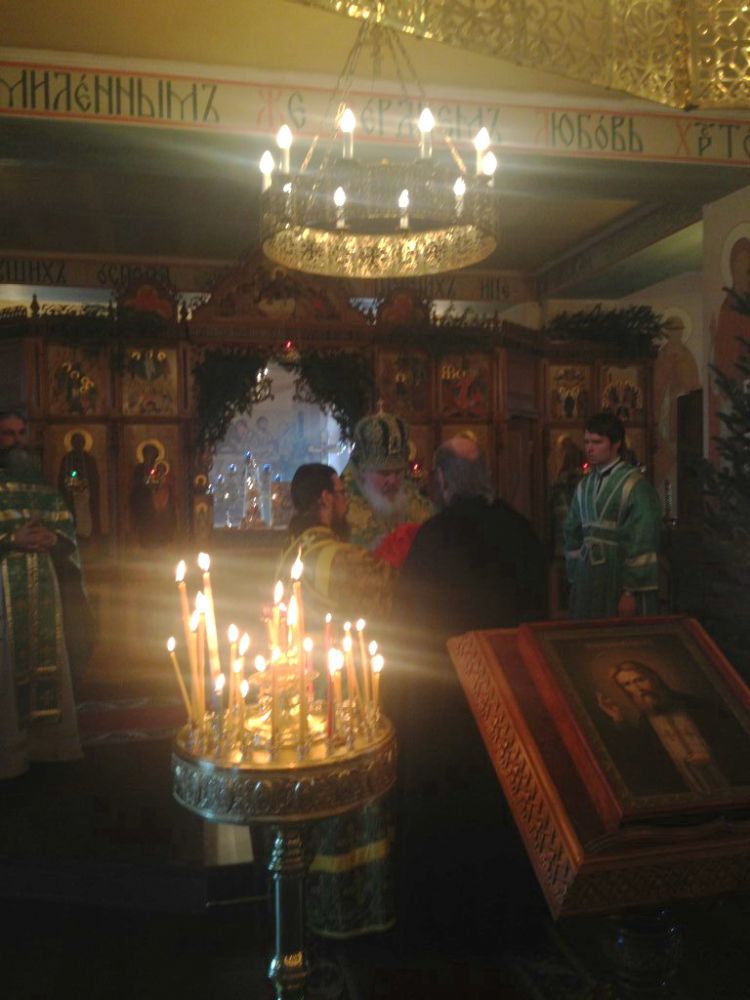 Владивосток. 15 января 2016 г., в день второго обретения мощей преподобного Серафима Саровского чудотворца, митрополит Владивостокский и Приморский Вениамин возглавил праздничную литургию в Свято-Серафимовском мужском монастыре на о. Русский. Ему сослужили наместник монастыря игумен Климент (Кривоносов) с братией, протодиакон Николай Наплавков.