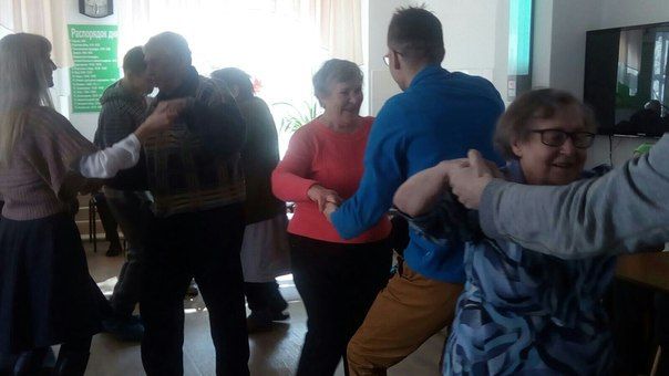 Света и Даша исполнили душевные, русские песни, от чего ноги сами пустились в пляс, и мы не заметили как схватили под руки бабушек и дедудушек и закружились в весёлом хороводе, очень пришлось по душе всем лото, ну и, конечно, очень приятно было вручить каждой бабуле по цветку.
