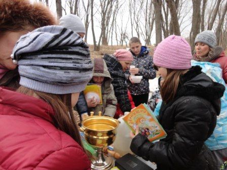 Клирик Успенского храма протоиерей Андрей Калчев отслужил молебен и напомнил о начале Великого поста. Затем сестры Общины рассказали ребятам о Церкви, Божиих заповедях, о молитве и об иконах. Каждый из 30 детей получил в подарок книги: иллюстрированные молитвословы, сборники рассказов и притч православных писателей, в том числе, книжки популярной детской серии «Зернышки». Беседа продолжилась за чаем: прямо под открытым небом для всех участников праздника накрыли сладкий стол.