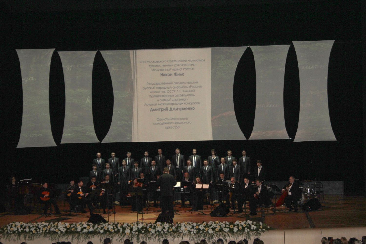 Со сцены позвучали музыкальные произведения в исполнении хора Сретенского монастыря и Государственного академического русского народного ансамбля «Россия». Тексты читали известные артисты театра и кино: Егор Бероев, Александр Голобородько, Алексей Кузнецов, Эвклид Кюрзюдис. Режиссер Оксана Шелест.