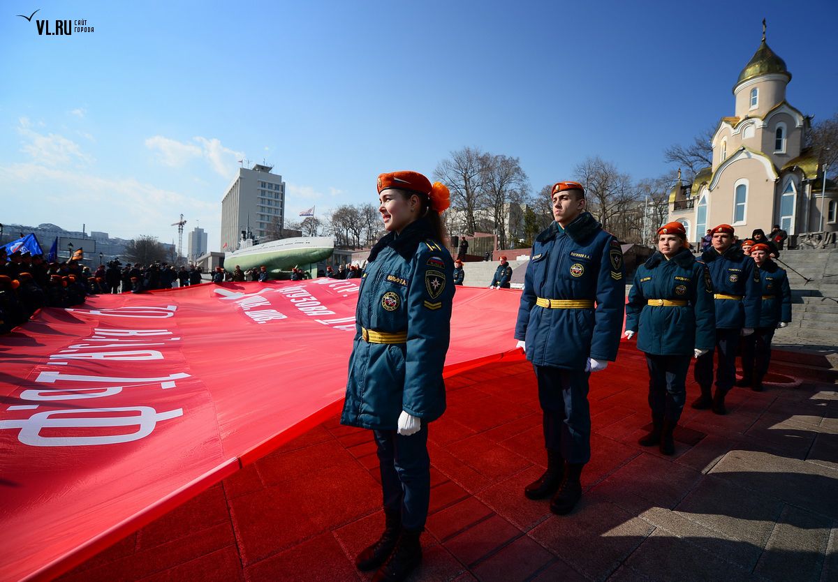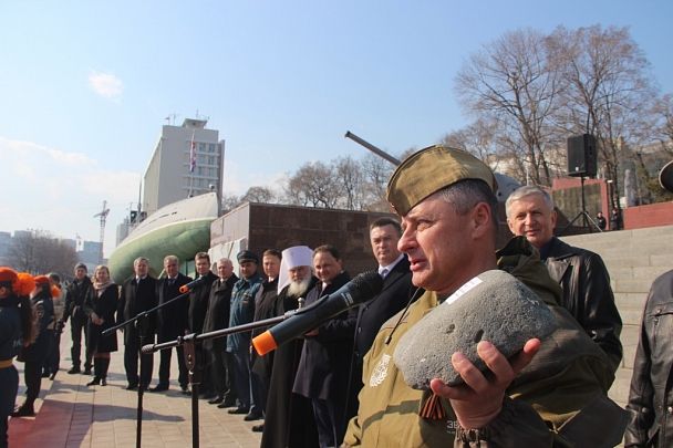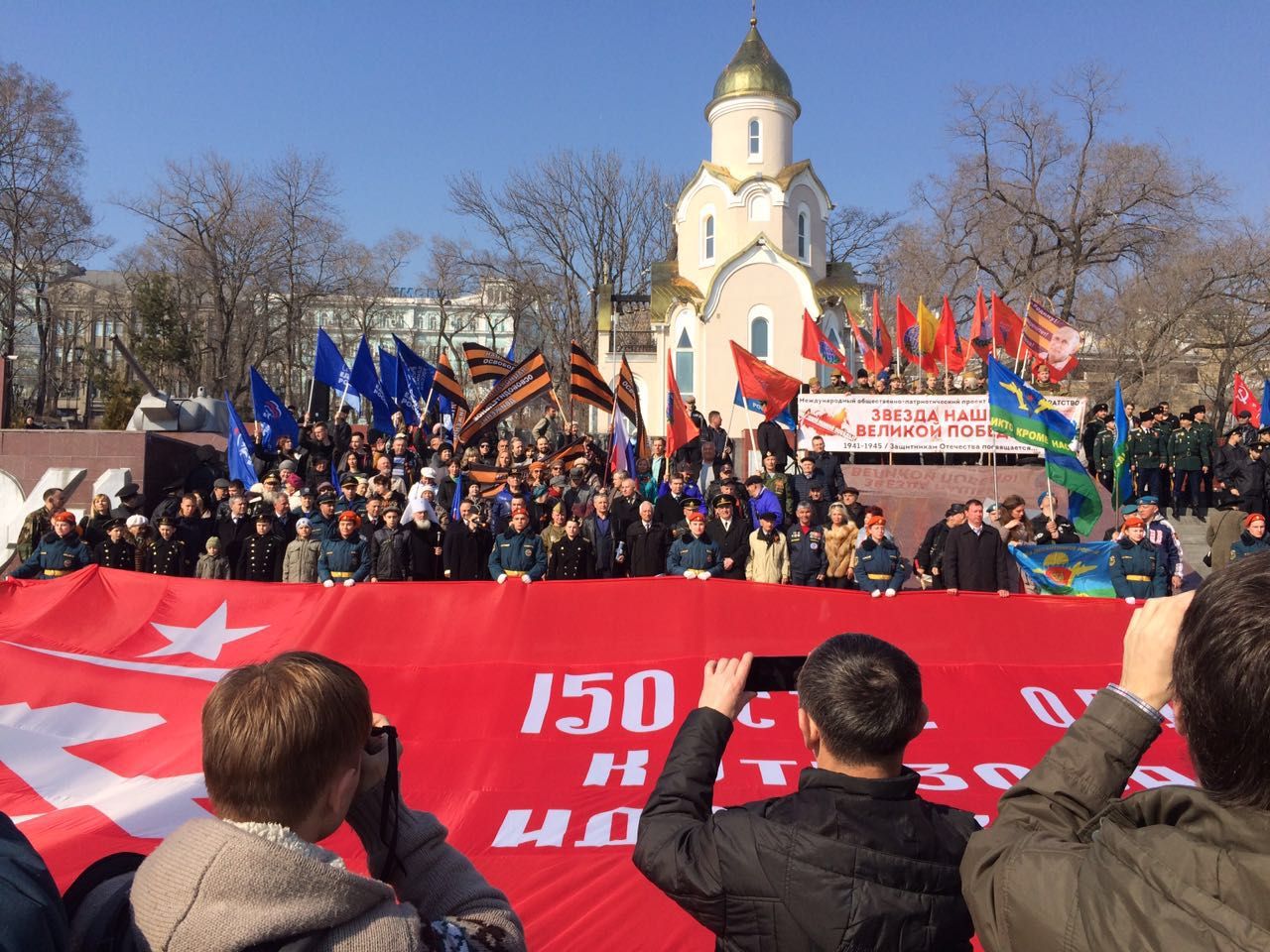 В 16 часов на Корабельной набережной около подводной лодки С-56 было развернуто 20-ти метровое знамя победы. Проводить в долгий и сложный путь участников автопробега пришли губернатор Приморского края Владимир Миклушевский, мэр города Владивостока Игорь Пушкарев, митрополит Владивостокский и Приморский Вениамин, представители общественных и политических организаций края.