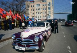 Владивосток. Самый дальний луч автопробега «Звезда нашей Великой Победы» отправился из Владивостока в Москву. Приморье стало одним из пяти регионов России, из которых одновременно по разным маршрутам отправились 25 автомобилей со знаменем Великой Победы. В составе приморской делегации – четыре автомобиля, один из которых отечественная «Победа» 1956 года выпуска. У владивостокской колонны самый протяжённый маршрут - более девяти тысяч километров.