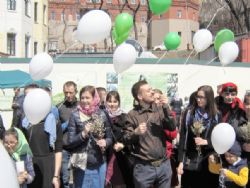 Молодежь Успенского храма провела "вербный флэшмоб". Группа молодежи, детей вместе с прихожанами и владыкой Иннокентием, с белыми и зелеными воздушными шарами привлекла внимание всех находившихся на территории храма и прохожих. Они сначала послушали стихи о празднике, потом вместе с приходским хором исполнили тропарь Вербного воскресенья и на словах "Слава тебе Боже наш, слава Тебе" отпустили 33 шара в небо...
