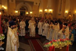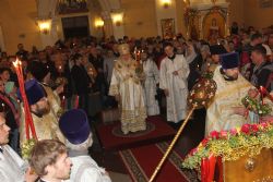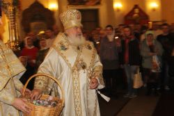 Находка. Епископ Находкинский и Преображенский Николай возглавил Пасхальные богослужения в Казанском кафедральном соборе. По традиции за Пасхальной заутреней Преосвященный владыка прочитал Огласительное слово святителя Иоанна Златоуста на Святую Пасху. По заамвонной молитве епископ Николай освятил артос и зачитал Пасхальное послание Предстоятеля Русской Православной Церкви Патриарха Московского и всея Руси Кирилла и поздравил прихожан со Светлым Христовым Воскресением.