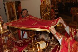 Его Высокопреосвященству сослужили: благочинный I округа Владивостокской епархии о.Димитрий Федорин; ключарь Покровского кафедрального собора протоиерей Александр Талько; духовенство епархии.
