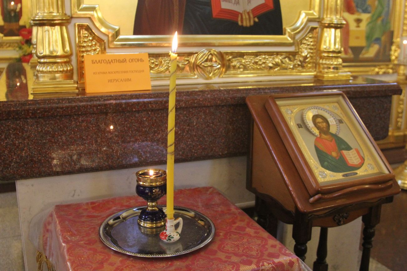 Благодатный огонь сошёл в Иерусалиме в Храме Гроба Господня 30 апреля, в Великую Субботу. Святыню в Россию специальным авиарейсом доставила делегация фонда Андрея Первозванного – сообщил сайт Московской Патриархии. Российская делегация доставила частицу Благодатного огня к Пасхальному богослужению в храм Христа Спасителя. В Покровский кафедральный собор святыню доставили по маршруту Святая Земля – Москва – Хабаровск – Уссурийск – Владивосток.