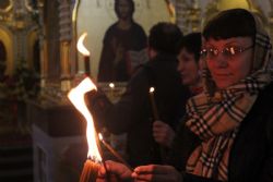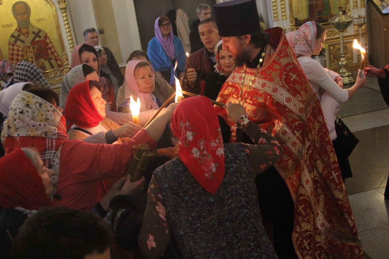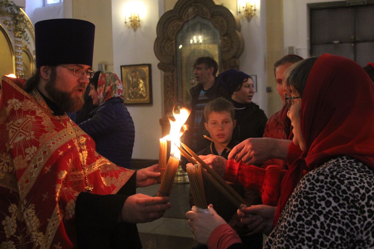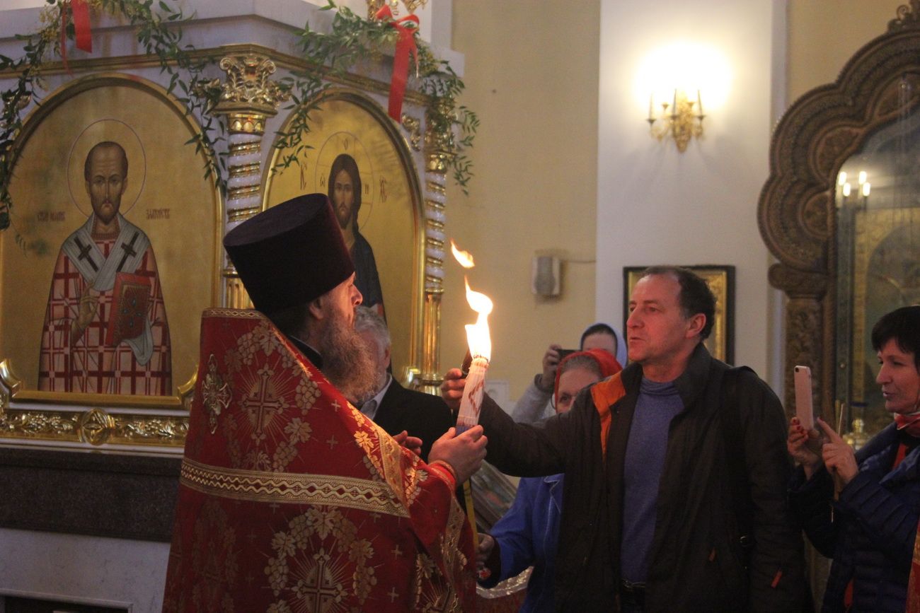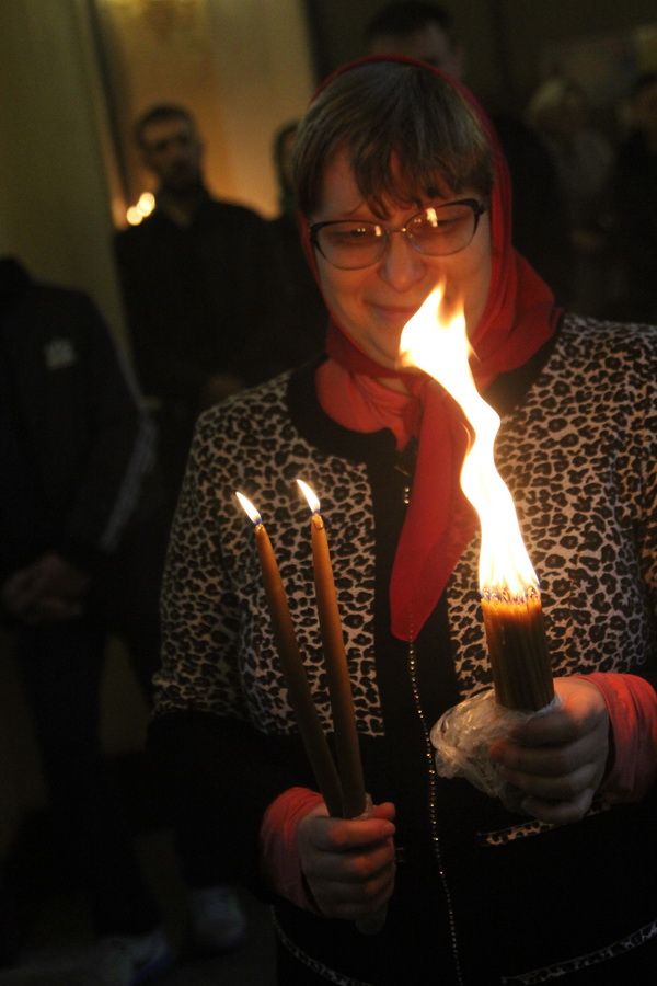 Свечи и лампады в соборе были затушены, а вновь их зажгли уже от Благодатного огня. Частичку великой святыни смогли унести домой все прихожане.