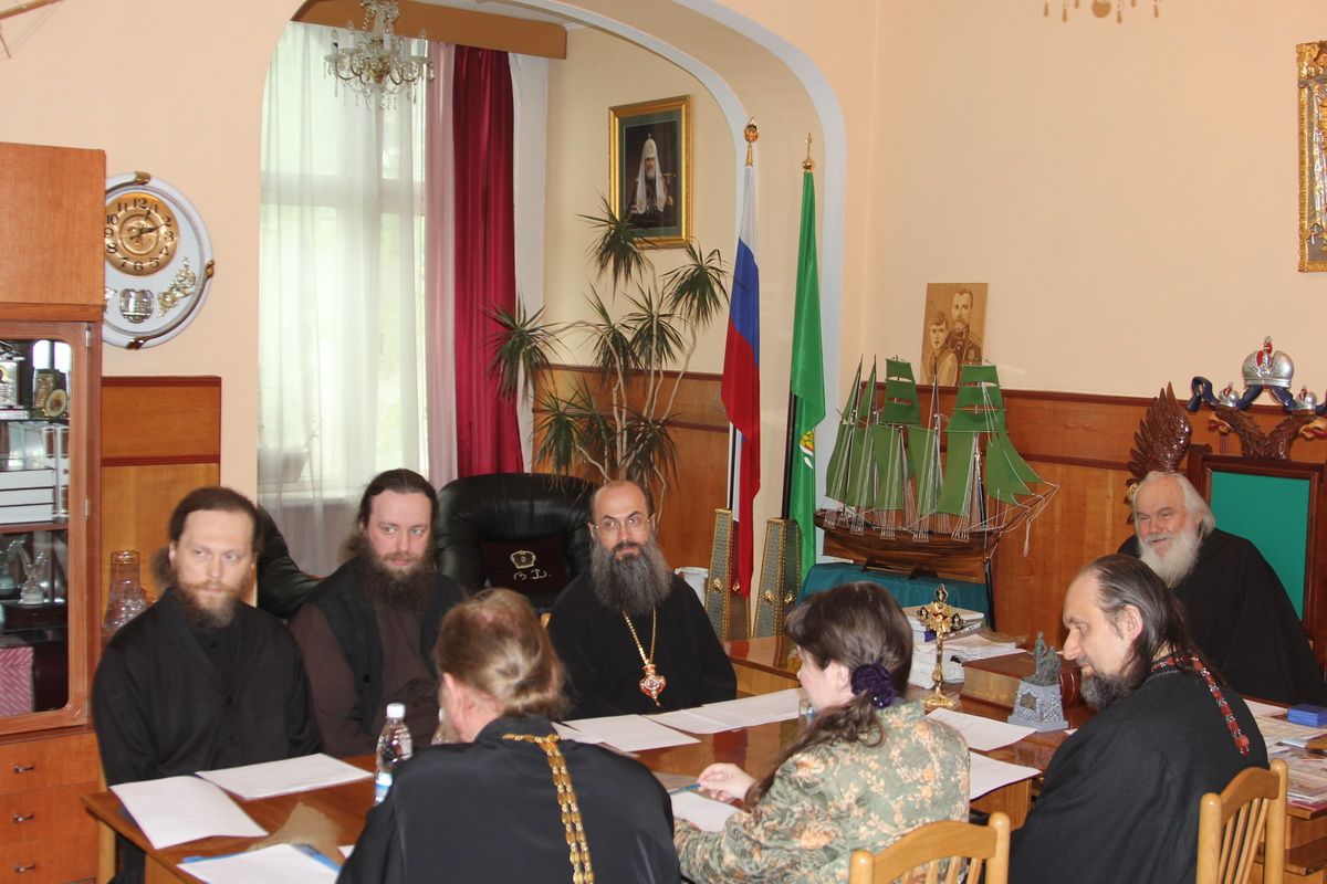 В ходе заседания обсудили итоги успеваемости за 2-е полугодие 2015-2016 учебного года. Особое внимание уделили вопросам дисциплины в студентов. Также обсудили организацию сессии студентов дневного отделения. Экзамены у студентов-очников начнутся со 2 июня 2016 года и продлятся весь июнь. Первый экзамен у первокурсников по предмету «Библеистика (Новый Завет)» примет ректор училища митрополит Владивостокский и Приморский Вениамин.