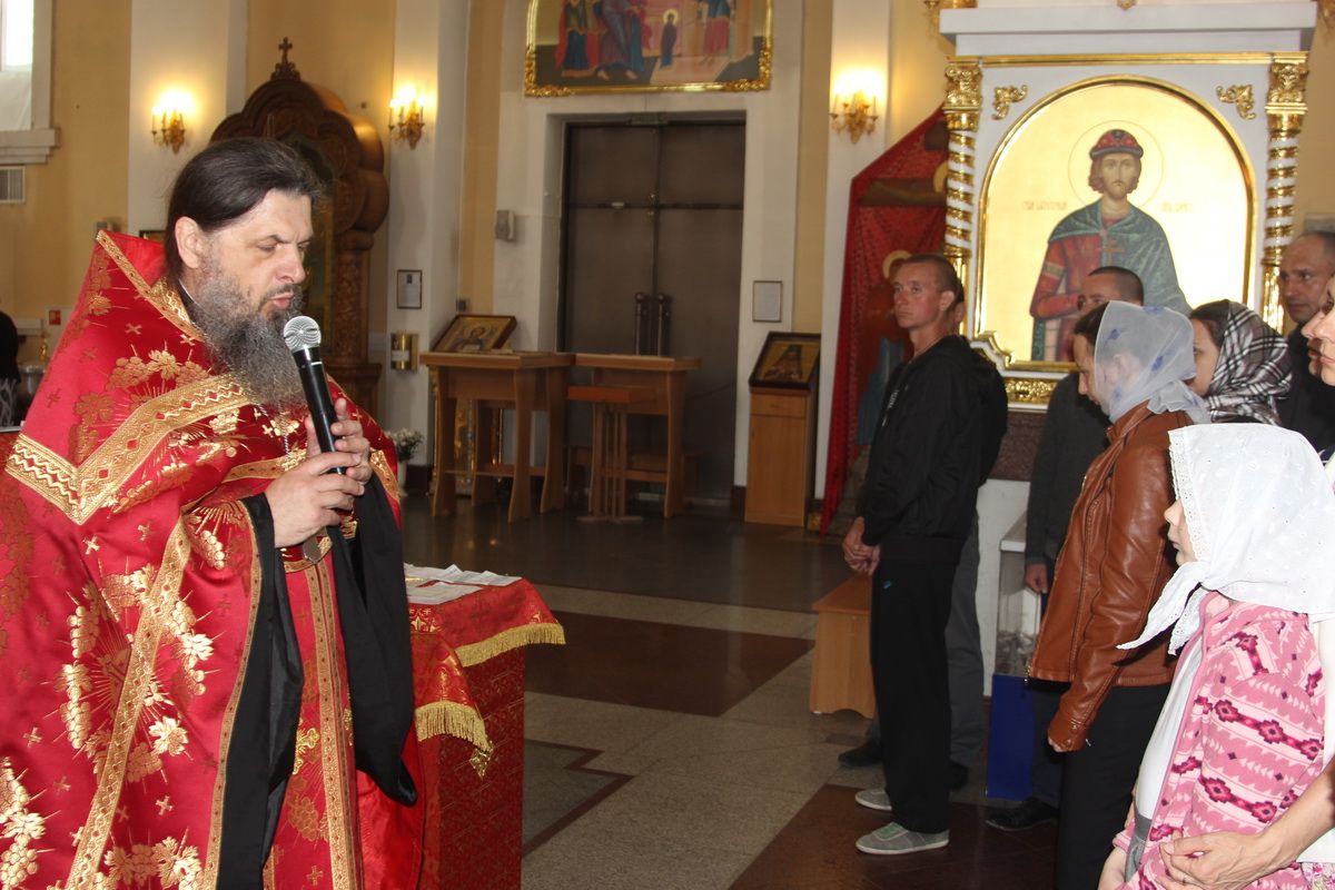 Ключарь Покровского кафедрального собора протоиерей Александр Талько возглавил Божественную литургию. Затем был совершен праздничный молебен в сослужении руководителя Отдела епархии по взаимодействию с правоохранительными органами иерея Димитрия Брызгалова. Были возжены 300 свечей. Вознесены молитвы о сохранении жизни.