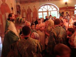 На престольный праздник монастырский храм был наполнен паломниками, приехавшими со всех концов Приморского края. Мамы с младенцами молились на улице – через настежь открытые окна богослужение было слышно.