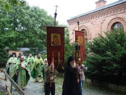 По окончании Божественной литургии состоялся водосвятный молебен; из-за начавшегося дождя его отслужили в храме. По окончании совершили Крестный ход вокруг монастырского храма святого Серафима Саровского. К радости крестоходцев капли дождя смешивались со святой водой.