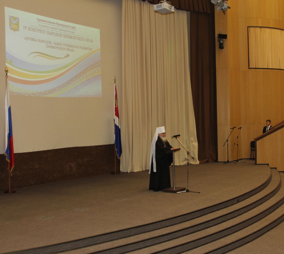 Глава Приморской митрополии владыка Вениамин, обращаясь к участникам конгресса, в частности, отметил, что миссия Православия в многонациональном регионе — это созидание мира и согласия: