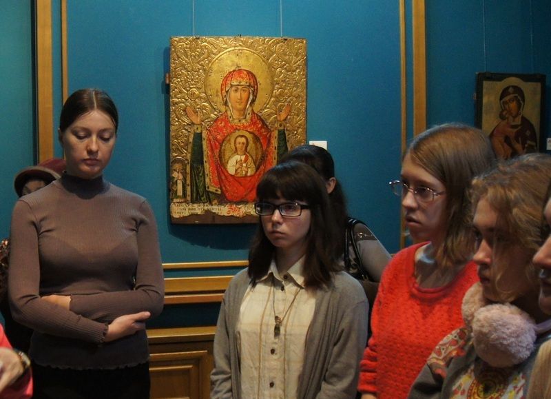 Владивосток. 17 ноября 2016 года студенты Приморского краевого художественного колледжа, который находится рядом с храмом Успения Божией Матери, побывали на выставке "Образ Богоматери" в Приморской государственной картинной галерее (Алеутская, 12). По благословению настоятеля храма Успения Божией Матери епископа Иннокентия на экскурсию пришли около пятидесяти студентов 1 и 3 курсов, преподаватели и директор колледжа Андрей Анатольевич Обманец, а также несколько прихожан Успенского храма.