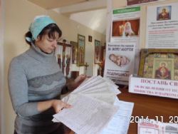 Неделя прошла быстро, 27 ноября те, кто брал подписные листочки, отчитались перед батюшкой, вот пономарь Сергей собрал 20 подписей, а прихожанин Петр из села Полтавка – 30, сдавали собранное кто сколько смог. А в общей сложности сколько у нас собрано подписей? «Шестьсот семьдесят подписей» – с гордостью отвечает наша матушка Иоанна.