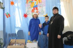 Владивосток. Иерей Павел Иванчин, клирик храма в честь святителя Николая Чудотворца (на Диомиде) и православный психолог Елена Владимировна Волошина, по благословению настоятеля храма протоиерея Василия Капитанюка, посетили детский дом с особенными детками №1 (специализированную школу-интернат № 1 г. Владивостока на ул. Лазо, 4) и малышей в детском доме №2 (КГКУ Центр содействия семейному устройству детей-сирот и детей, оставшихся без попечения родителей, № 2 г. Владивостока, ул. Сабанеева, 24). Их сопровождали певчие клироса храма и ребята из театральной студии "Балаганчик". Рождественский праздник удался. Детям рассказали о событиях Евангельской истории связанных с Рождеством Христовым, пропели рождественские колядки. Особая благодарность театральной студии "Балаганчик" за помощь в проведении праздников и восхитительную сказку "Рождественское чудо" и добрым людям за наборы конфет которые помогли сделать счастливыми более 70 деток-сирот.