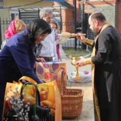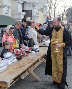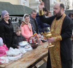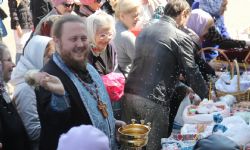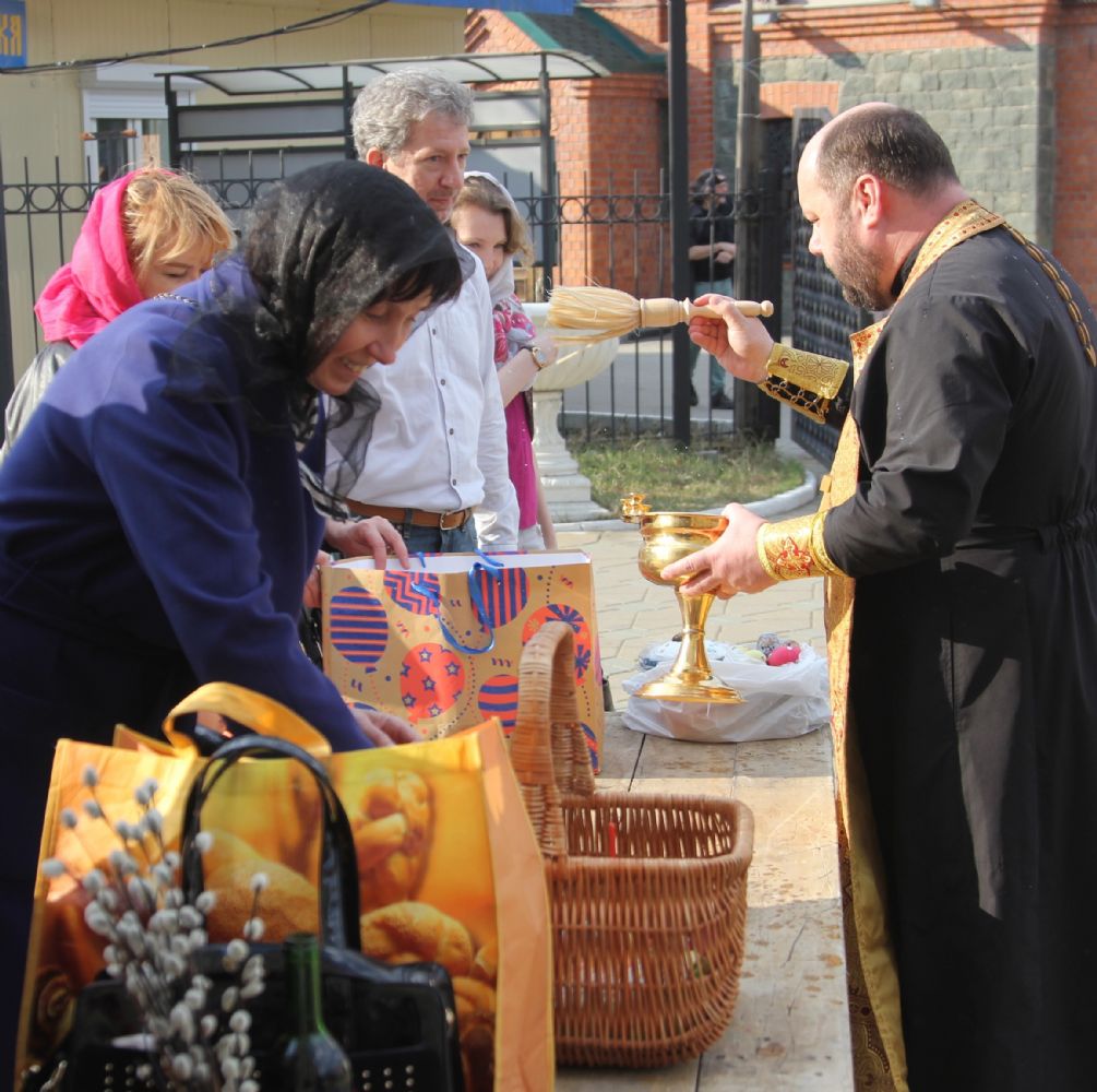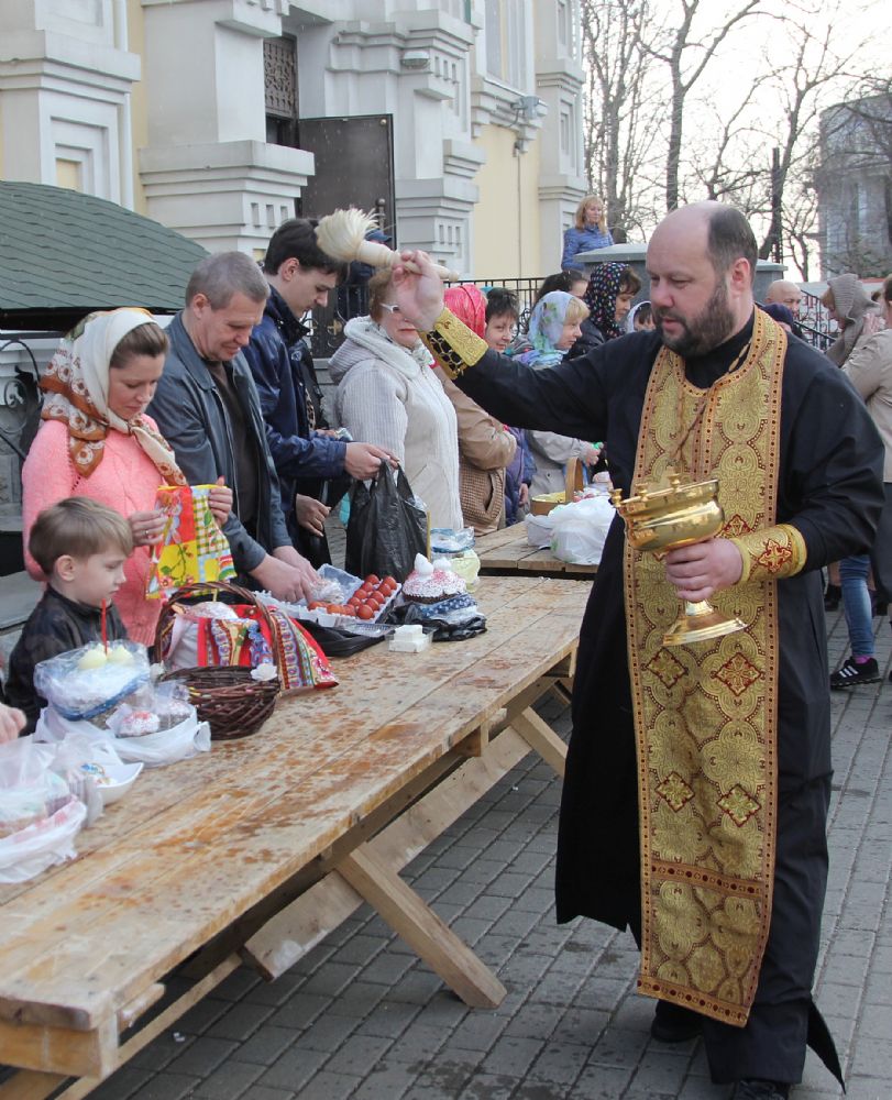 По окончании Литургии началось освящение Пасхальных куличей. В храмы Приморья в этот день пришли тысячи человек. В Покровском кафедральном соборе освящать куличи продолжали на протяжении всего дня, до позднего вечера, богослужения совершали благочинный собора игумен Тихон (Иршенко) и руководитель Епархиального отдела по взаимодействию с МЧС и МВД иерей Димитрий Брызгалов.
