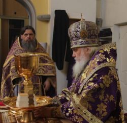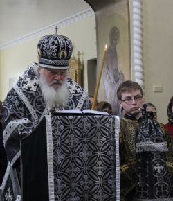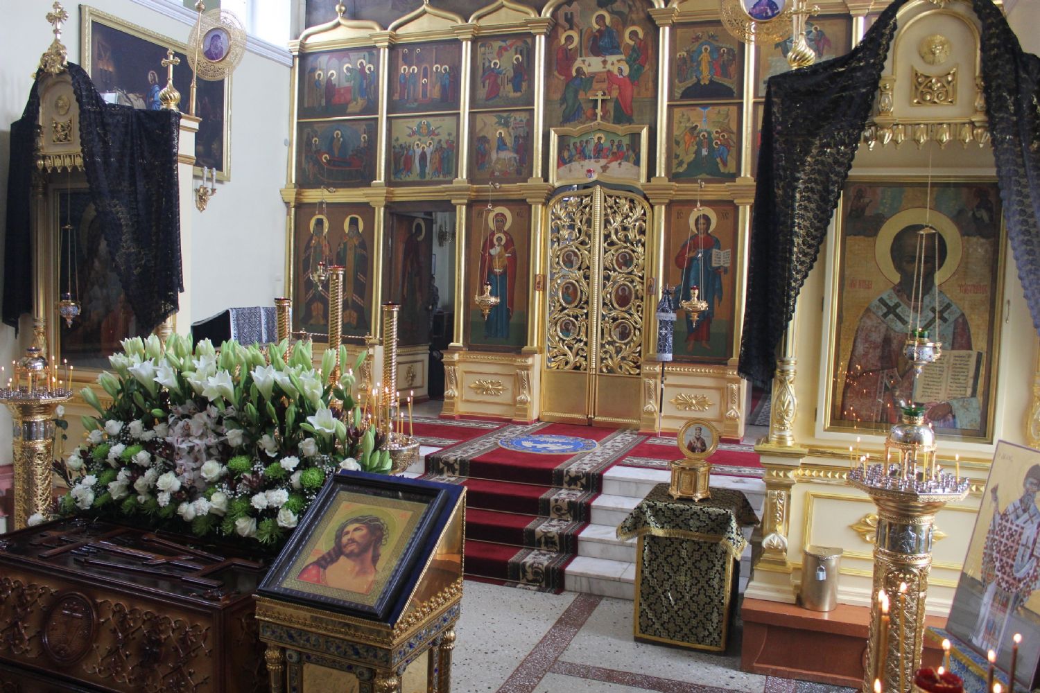 В Великий Пяток, 14 апреля, в воспоминание Святых спасительных Страстей Господа нашего Иисуса Христа, Высокопреосвященнейший владыка совершил вечерню с выносом Плащаницы Спасителя в Никольском кафедральном соборе; а затем, в канун Великой Субботы, — утреню с чином погребения Плащаницы в Покровском кафедральном соборе.