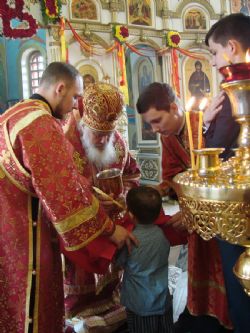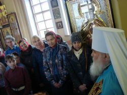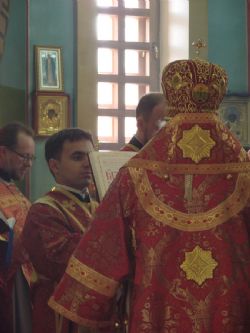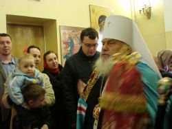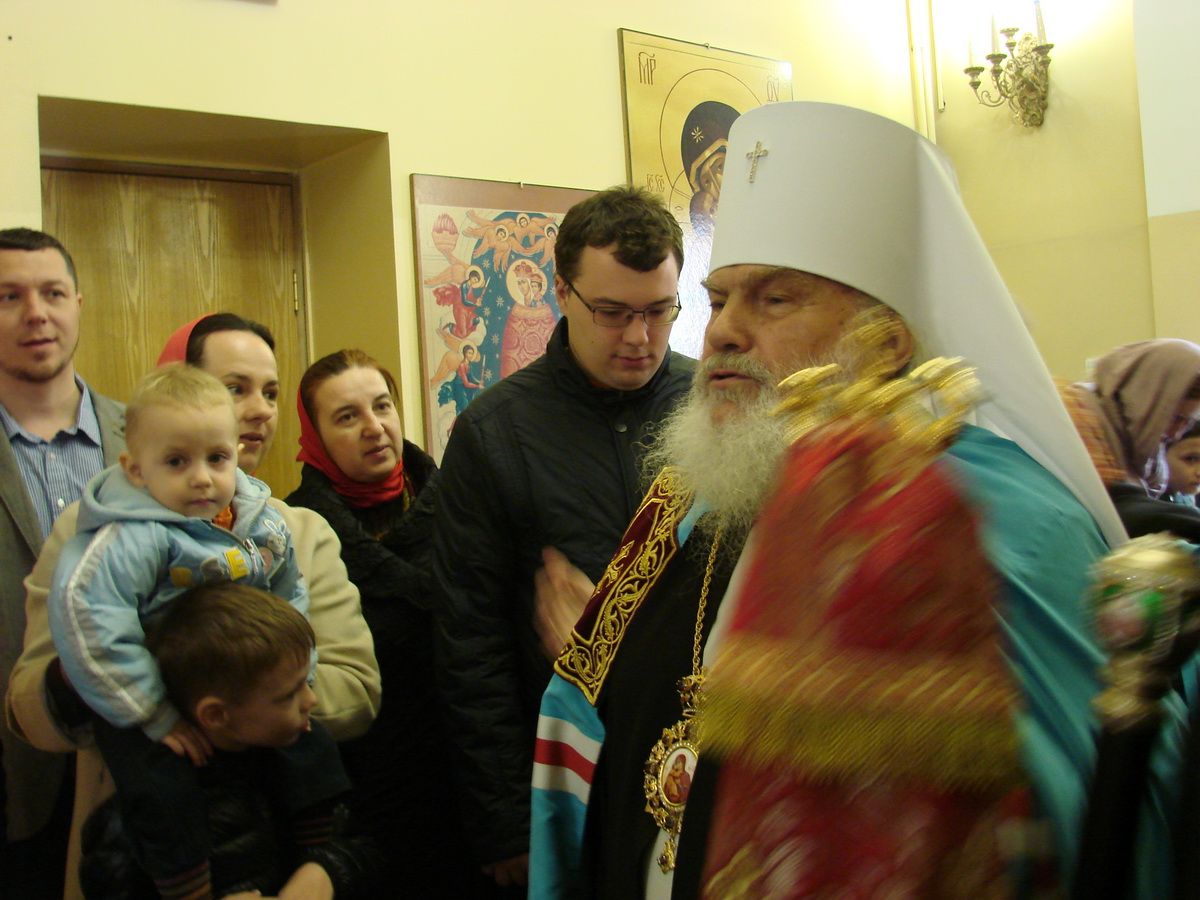 Его Высокопреосвященству сослужили: настоятель храма святых равноапостольных Кирилла и Мефодия протоиерей Игорь Талько и клирики храма: протоиерей Андрей Метелёв, руководитель сектора по вопросам защиты материнства и детства при епархиальном отделе по церковной благотворительности и социальному служению, игумен Никита (Зеленюк).