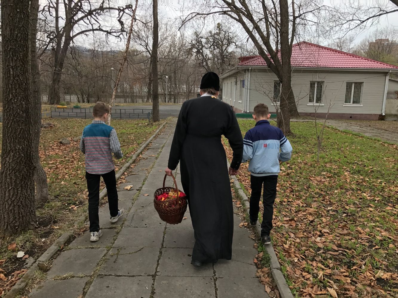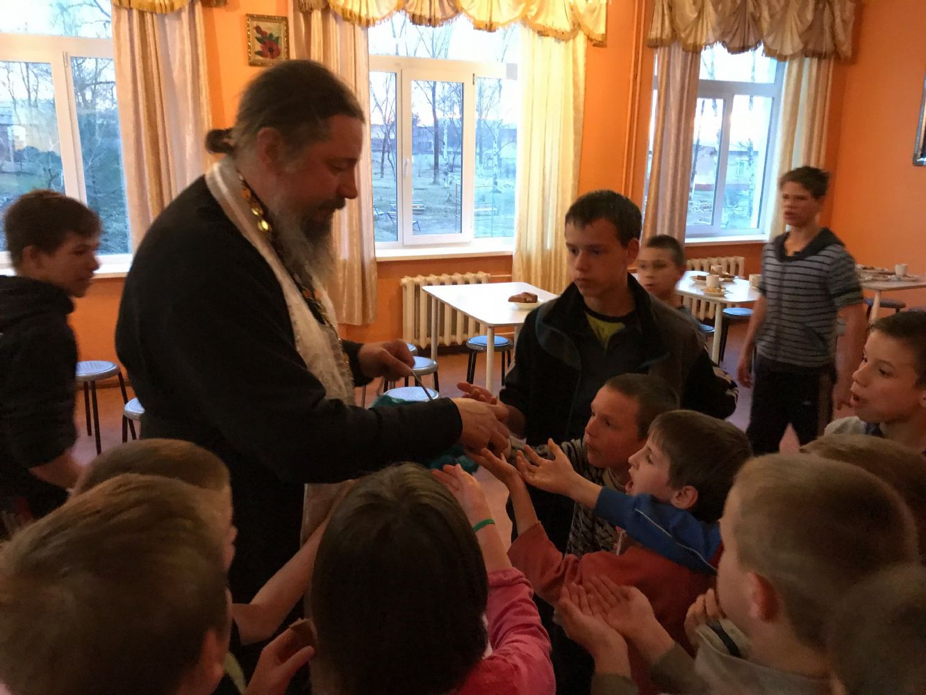 Угловое. Храм Покрова Божией Матери. Прихожане храма вместе с настоятелем посетили 5-ти детских домов на Светлой Пасхальной неделе. Всех детей поздравили с Пасхой Христовой и по православной традиции вручили каждому ребёнку пасхальные яйца, передали куличи, конфеты и иконки с изображением Воскресшего Христа – со всеми поделились радостью о Воскресшем Спасителе.