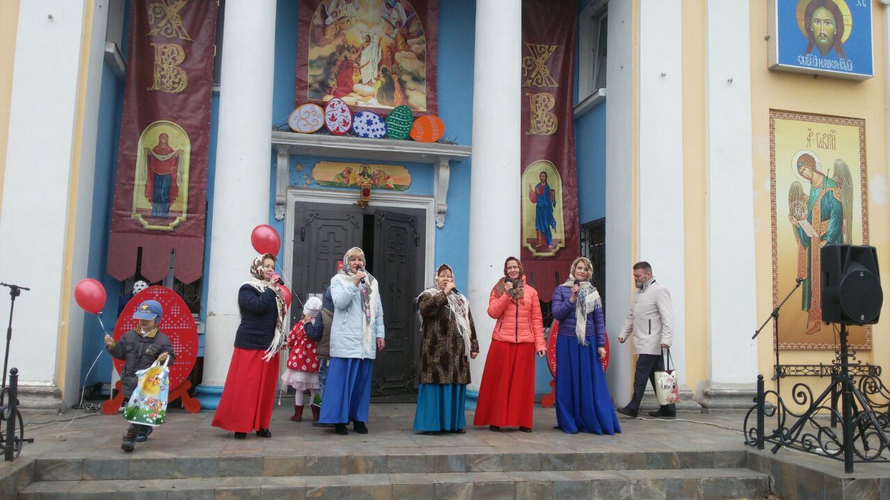 Покровский кафедральный собор. Приход Покровского кафедрального собора и добровольцы Службы "Милосердие" поздравили детей из Центра защиты материнства "Колыбель" и показали Пасхальный кукольный спектакль. Для детей устроили игры с призами и праздничное чаепитие.