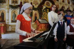 Перед собравшимися выступил каждый ребёнок: кто-то прочёл, разученные к торжеству проникновенные стихи; а дети протоиерея Андрея Калчева продемонстрировали виртуозную игру на электрооргане. Они обучаются игре на музыкальных инструментах.