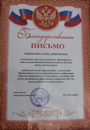 Владивосток. Определены претенденты на звание лауреатов и победителей в номинации I регионального этапа XII Всероссийского конкурса «За нравственный подвиг учителя» в Приморской митрополии. Конкурс рассматривает проекты в области педагогики, воспитания и работы с детьми и молодёжью до 20 лет. Экспертная комиссия изучила 18 конкурсных работ, представленных 28 участниками в четырех номинациях — «За организацию духовно-нравственного воспитания в рамках образовательного учреждения»; «Лучшая программа духовно-нравственного и гражданско-патриотического воспитания детей и молодежи»; «Лучшая методическая разработка по предметам: Основы религиозных культур и светской этики (ОРКСЭ), Основы духовно-нравственной культуры народов России (ОДНКНР)»; «Лучший издательский проект года».