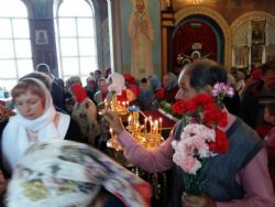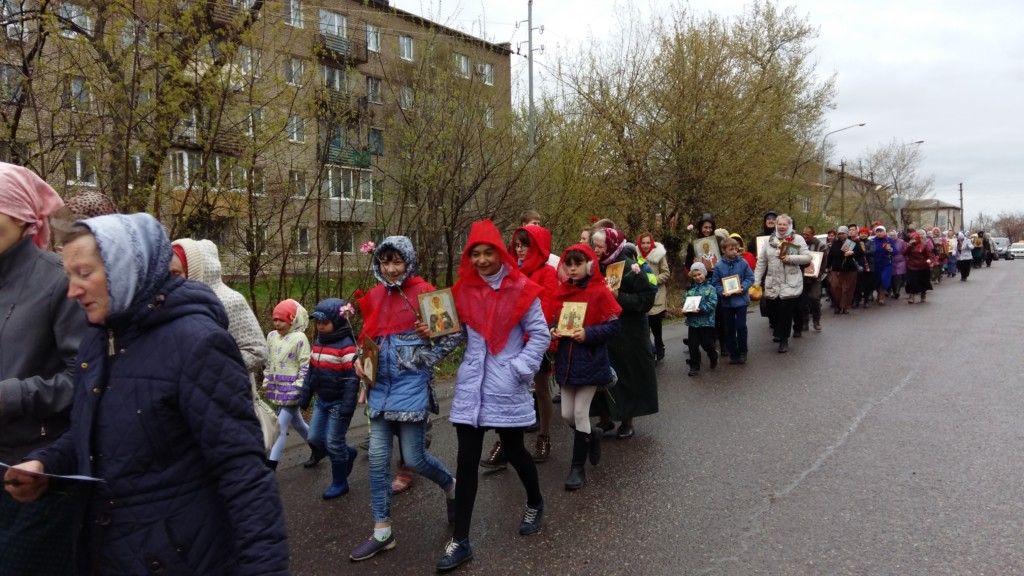 Батюшка о.Владимир поздравил всех прихожанок, каждой подарил цветы гвоздики и Пасхальный номер журнала «Душа». Для каждой батюшка нашёл тёплые слова. На улице в это время была непогода, дул сильный ветер, шёл небольшой дождь. Настоятель громко спросил с амвона – «Готовы идти на Крестный ход?». Ответом было единое - «Да».
