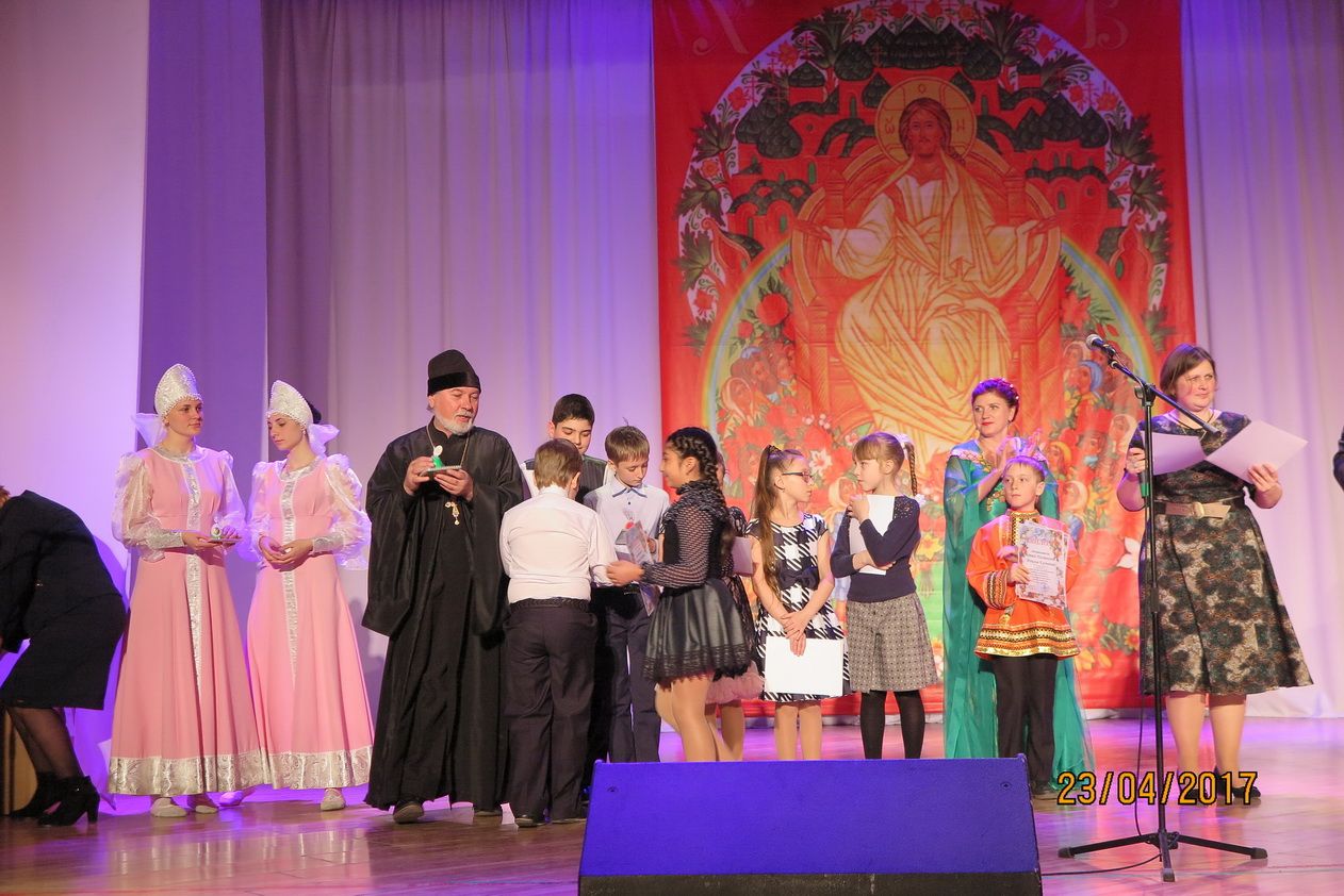 Фокино. В Находкинской епархии завершился ежегодный фестиваль «Пасхальная радость» - сообщает сайт Находкинской епархии. В отборочном этапе приняли участие: в прослушивании более восьмидесяти человек и более ста – в конкурсе прикладного искусства. Финал фестиваля – гала-концерт прошёл в зале Центра культуры и искусства «Спутник» г. Фокино.