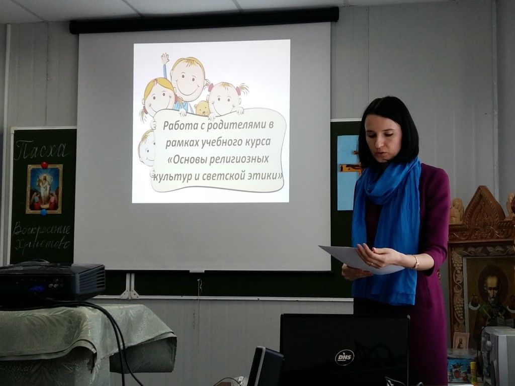 По второму вопросу слушали выступление Елены Павловны Александровой, учителя ОРКСЭ школы № 4, которое сопровождалось презентацией. Педагог рассказала о работе с родителями в рамках курса ОРКСЭ.