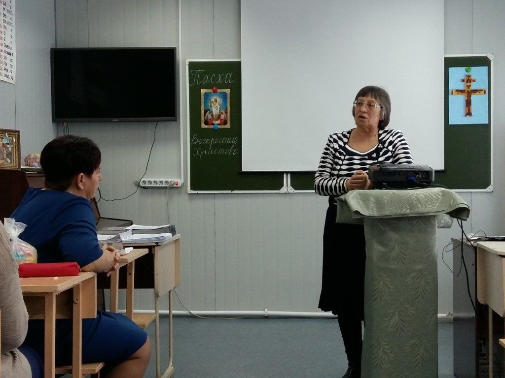 По третьему вопросу выступила Надежда Ивановна Ольховикова, педагог с большим опытом преподавания по Православной культуре, директор Воскресной школы храма. Главная мысль её доклада – это духовная жизнь человека, смысл жизни христианина, спасение. Где черпать силы, знания для правильного преподавания религиозного предмета? Что поможет детям лучше познать Православную культуру? Ответ прост: храм, жизнь в Церкви, участие в Таинствах Церкви.